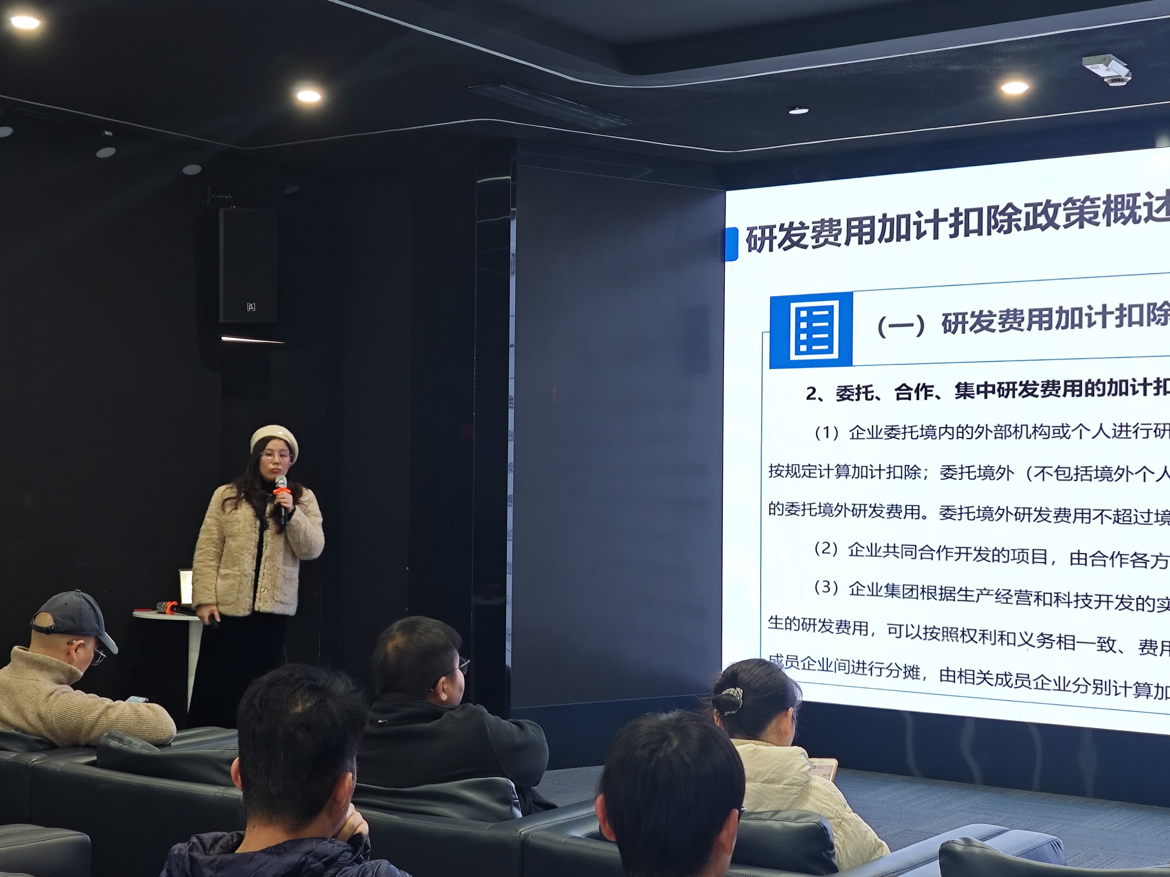 每一年年终,都是税务申报的关键时间节点,为助力园区企业全面了解最新加计扣除政策动态,掌握正确申报方法,规避常见错误,12月20日下午,我所姚英飞受邀到艺创小镇开展「研发费用加计扣除税务风险点及财务注意事项」专题讲座。